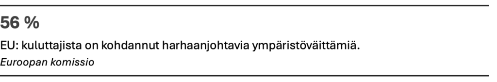 Lähteet: Euroopan komissio 2025. Empowering Consumers for the Green Transition. Viitattu 25.11.2025. https://ec.europa.eu/commission/presscorner/api/files/attachment/872173/Factsheet%20Empowering%20Consumers.pdf